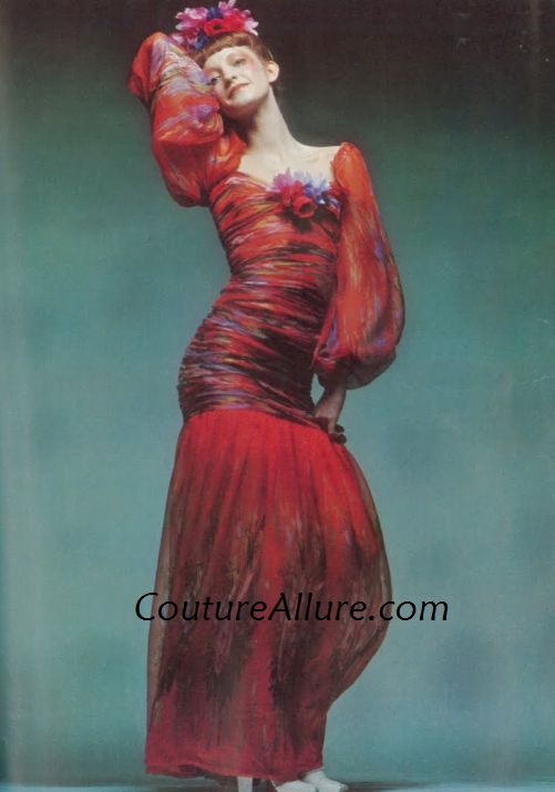 Yves St. Laurent tie dyed silk organza evening gown.